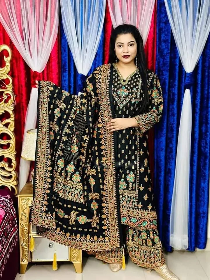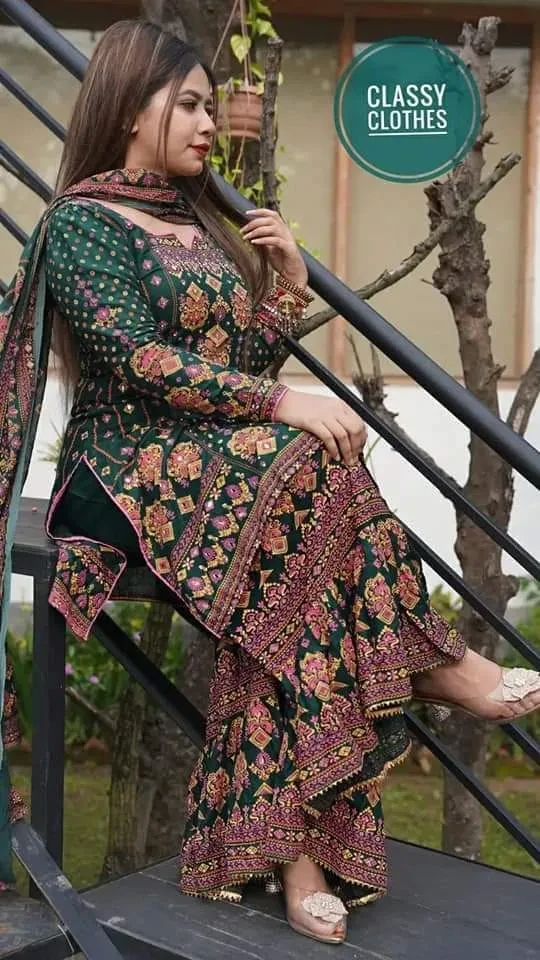 New Exclusive Linen Ready Made Skin Print Garara Dress Three Piece for Girls/Women