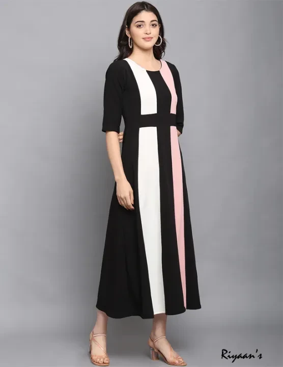 Trendy Round Neck Long Frock – Western Style for Girls & Women