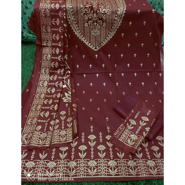 • Unstitch Cotton Three pice for women screen Printed Shalwar Kameez orna 3 pices