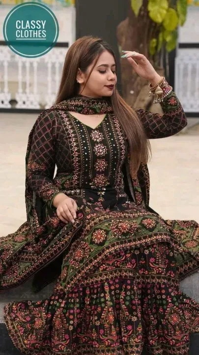 Eid Exclusive Sarara China Linen Gher Readymade Three-Piece Shalwar Kameez for Girls/Women This stylish Eid Exclusive Sarara set features a three-piece Shalwar Kameez made from high-quality China Linen fabric. The top showcases detailed screen print and glass mounting work, with embossed designs on the neck and Orna. It comes with a 5-hand veil and a long Jama, with a 48" length. The set includes a free-size pajama for ultimate comfort. Perfect for Eid celebrations and all festive occasions, this set offers both elegance and comfort in a lightweight design. Key Features: Three-piece set Embossed screen print work Free-size pajama 5-hand veil Premium quality fabric
