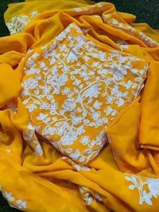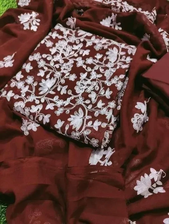 Experience timeless elegance with the Kashmiri Ari Work Georgette Embroidered Salwar Kameez for Women. Crafted from premium georgette fabric, this traditional outfit showcases intricate Kashmiri Ari embroidery, adding a touch of sophistication to your wardrobe. The lightweight and breathable material ensures all-day comfort, making it ideal for festive occasions, cultural events, and formal gatherings. Key Features: Fabric: High-quality georgette for a soft, flowy drape Embroidery: Exquisite Kashmiri Ari work for a refined look Style: Classic salwar kameez with intricate detailing Occasion: Perfect for festive wear, parties, and traditional events Comfort: Lightweight and breathable fabric for all-day wear Upgrade your ethnic collection with this beautifully designed salwar kameez, perfect for adding elegance to any special occasion.